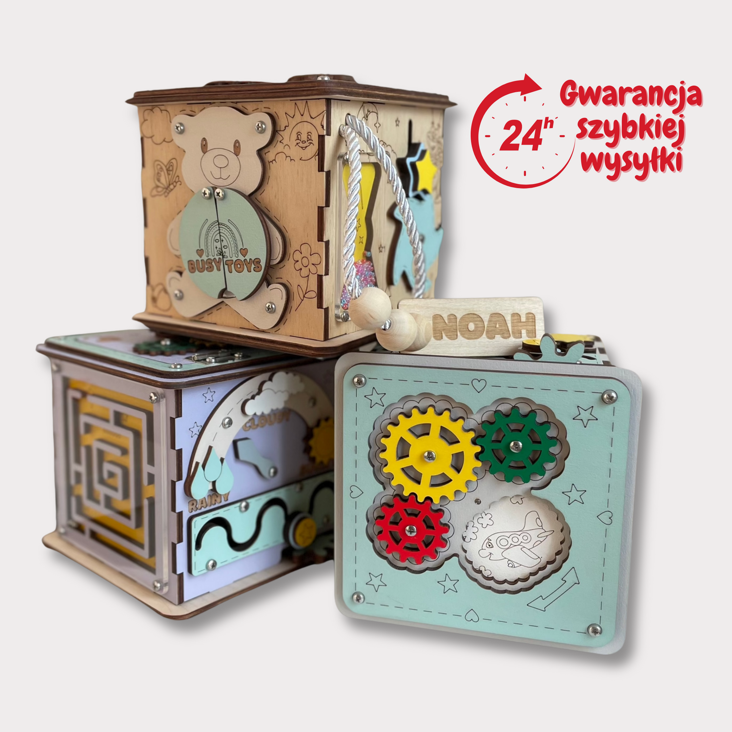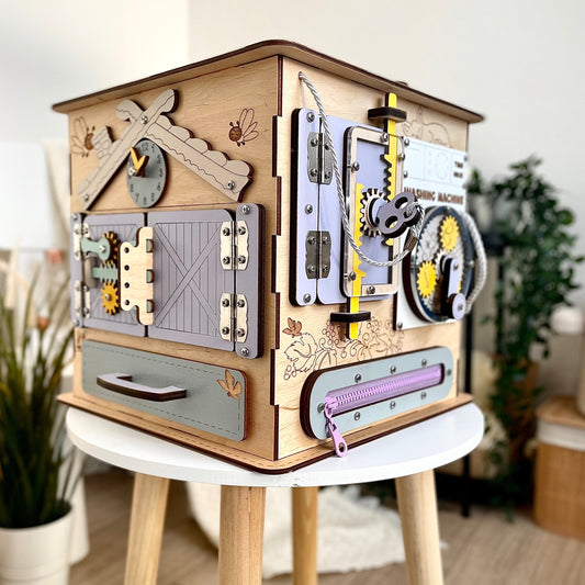 Każdy element Busy Cube ma swoją unikalną funkcję, która pomaga dziecku uczyć się i rozwijać w zabawny sposób.