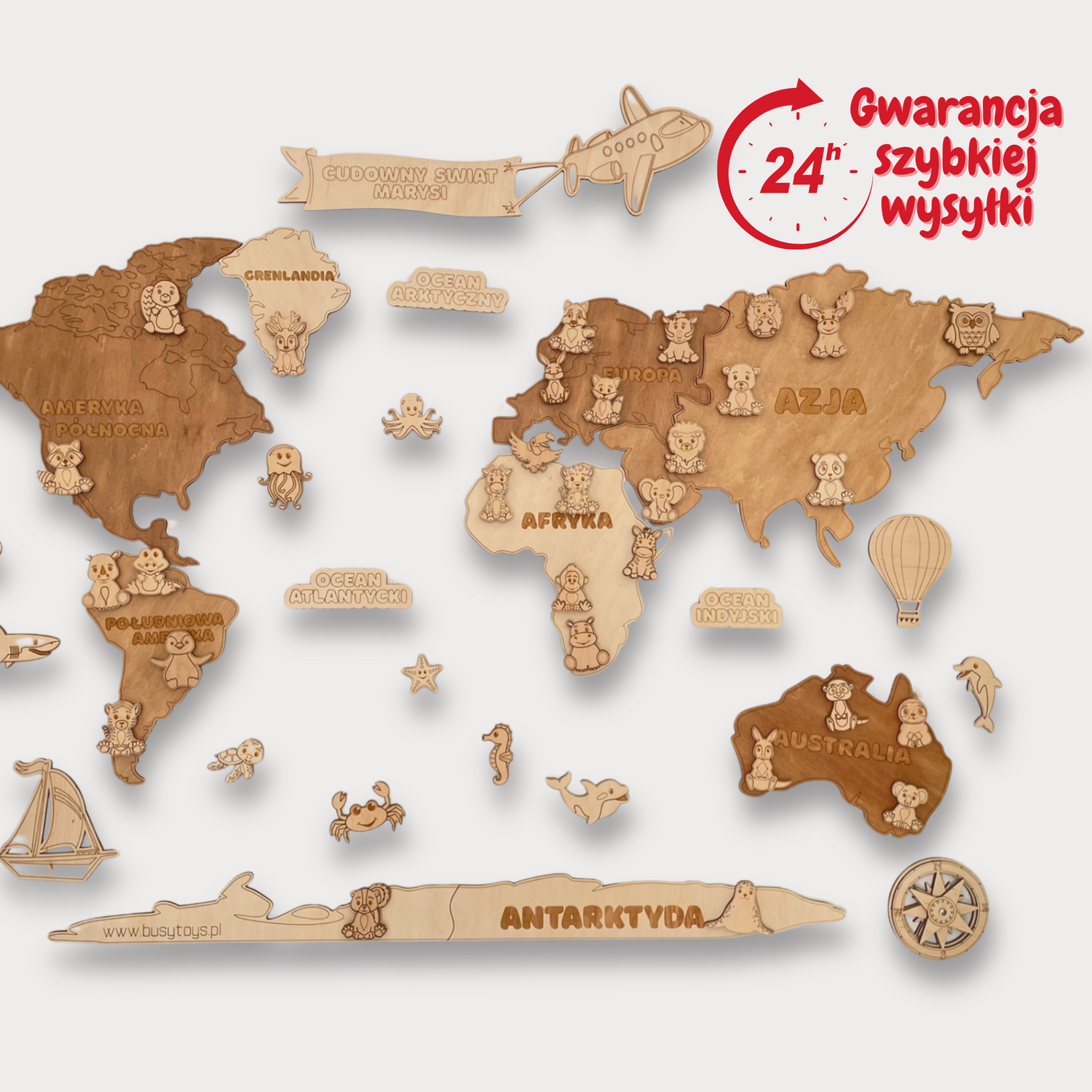 Witajcie w fascynującym świecie edukacyjnej przygody z naszą drewnianą mapą świata! Poznajcie naszą mapę, która dostarczy Wam nie tylko wiedzy, ale także wiele radości i kreatywnej zabawy.