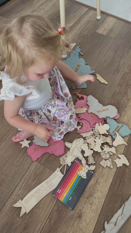 Busy Toys™ Drewniana mapa świata - Animal Planet - Różowa