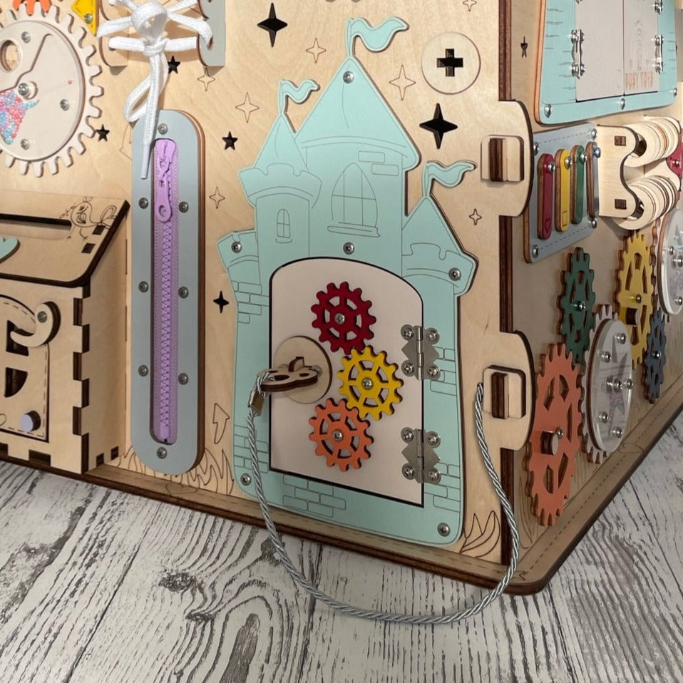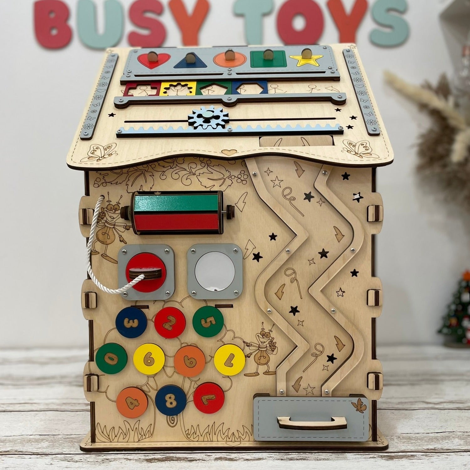 Busy HOUSE - is an excellent investment in the development of your child. By using sensory toys, your child will be able to practice concentration and develop independence. However, remember that these products should only be used under adult supervision.