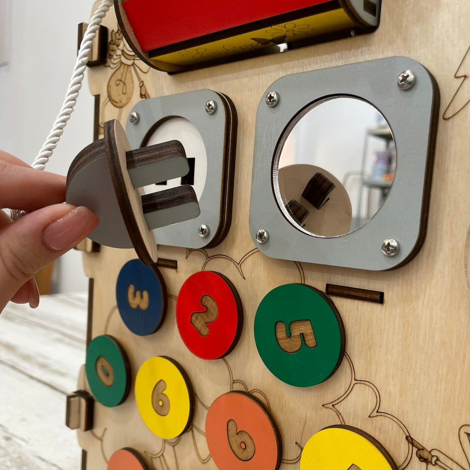 - Wooden plug with socket - The child can practice the ability to match the plug to the socket.
