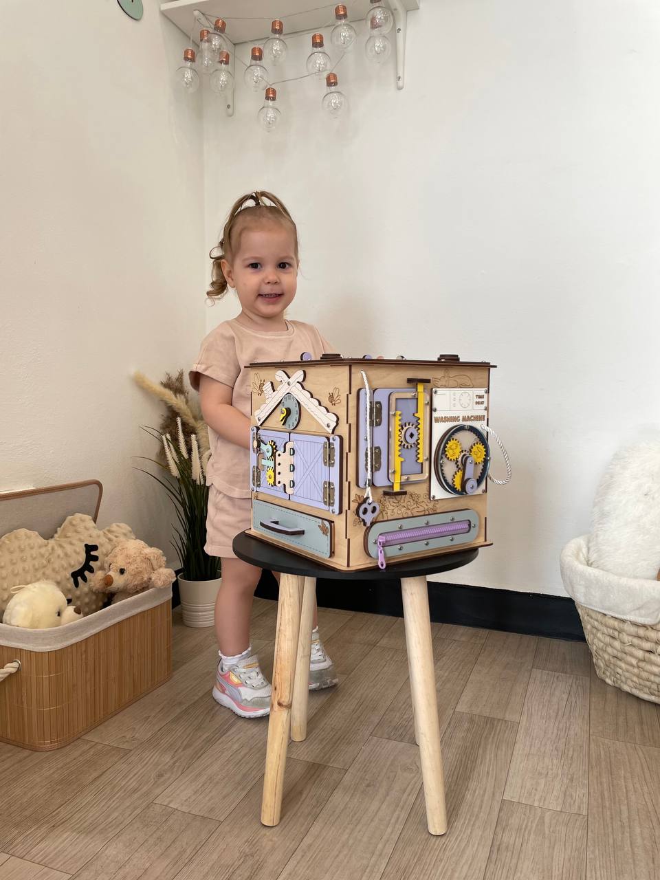 A compact cube with many elements to develop your child's fine motor skills and imagination. Small size but huge potential, a convenient option for your child's development at home.