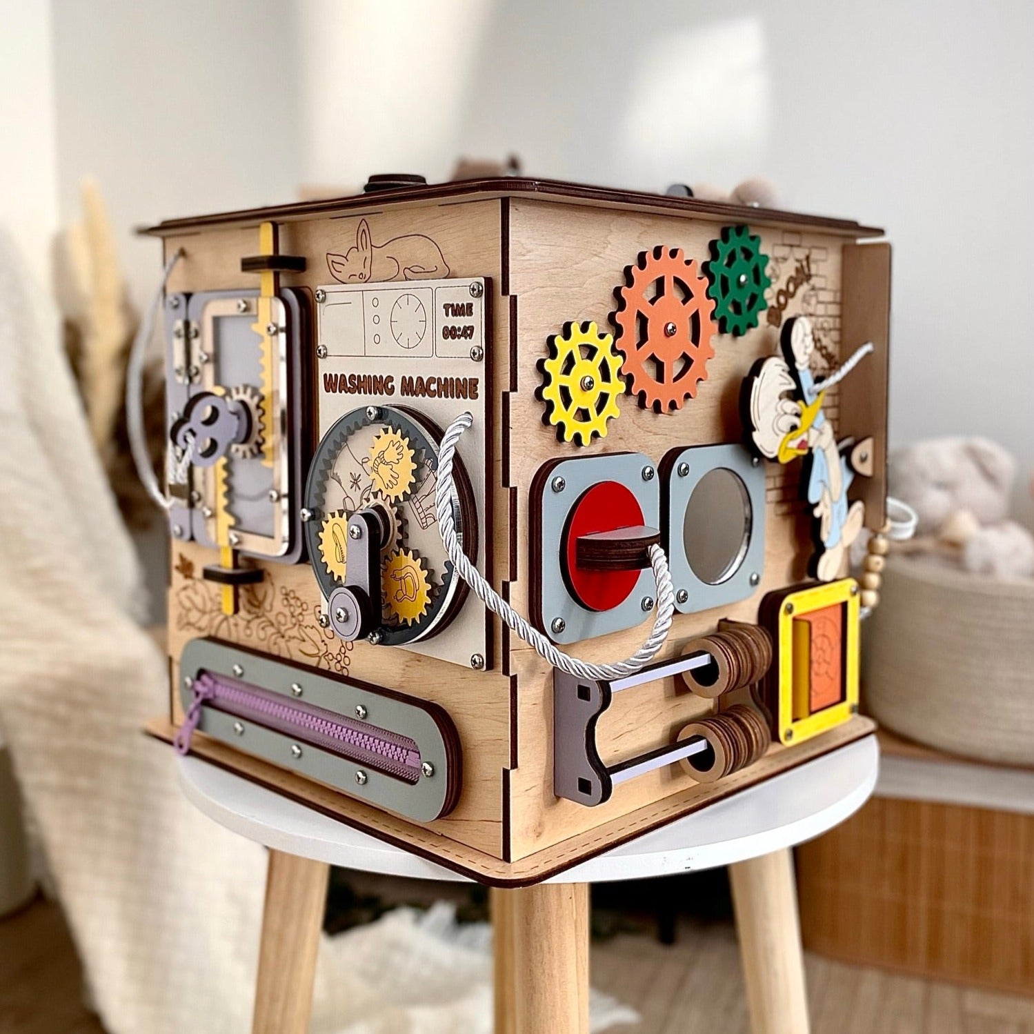 A compact cube with many elements to develop your child's fine motor skills and imagination. Small size but huge potential, a convenient option for your child's development at home.