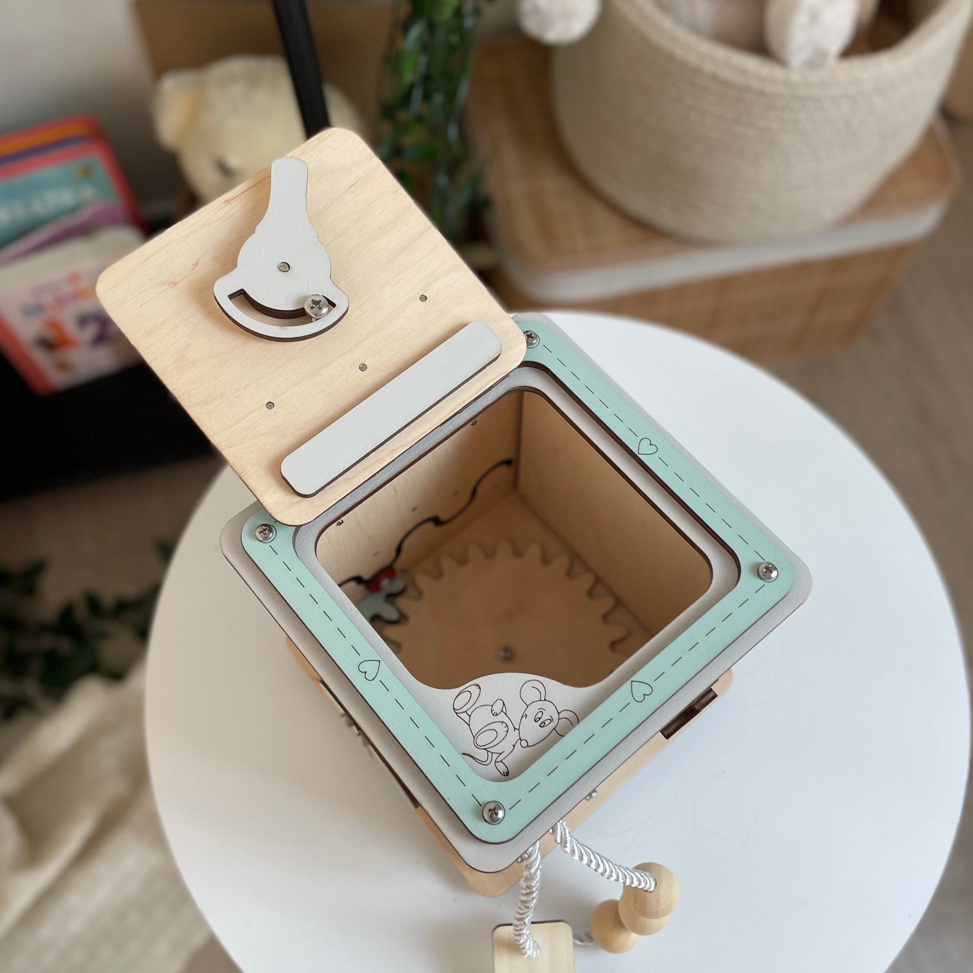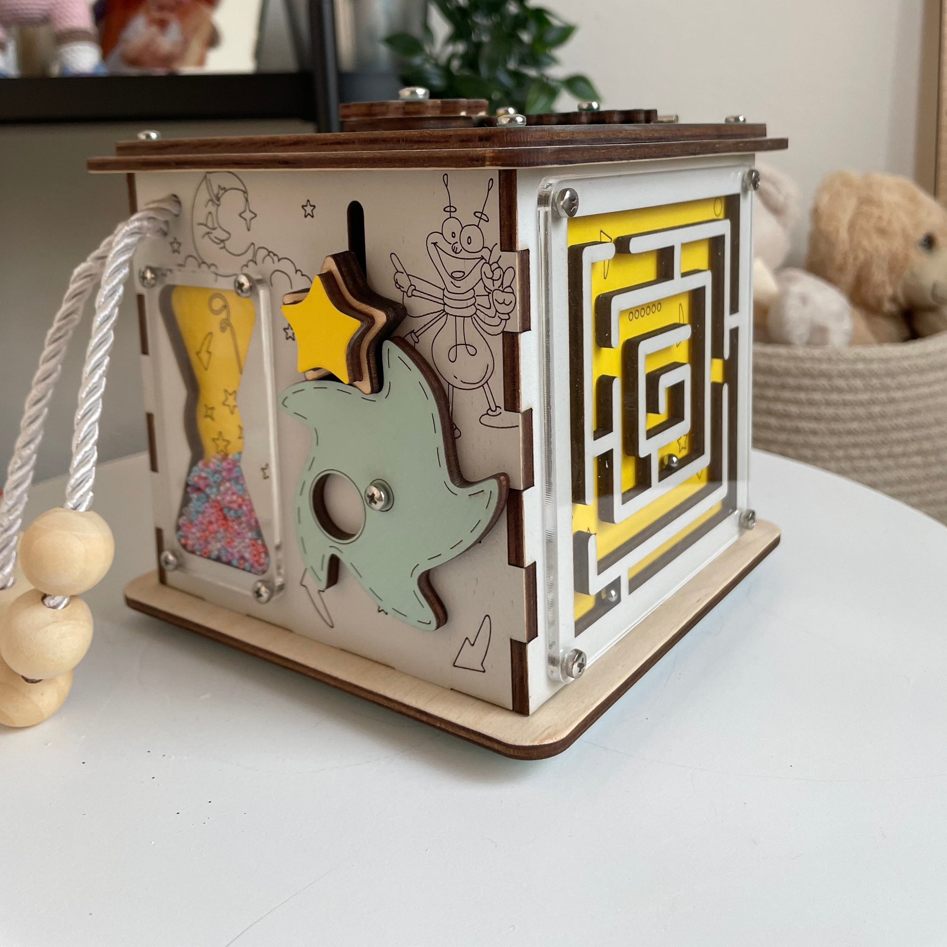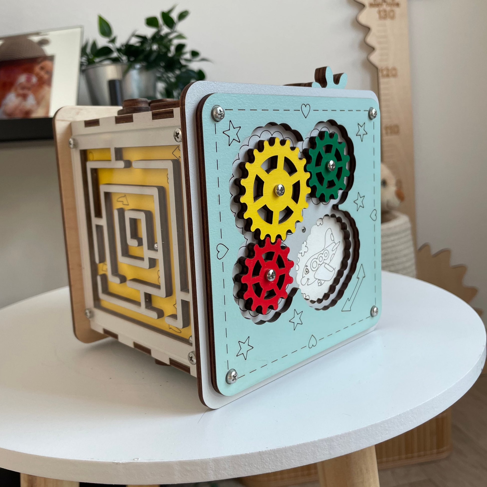Due to the fact that all toys are made by hand and we try to improve them, Busy Cube MINI may have minor differences resulting from the natural structure of the wood and manual work.